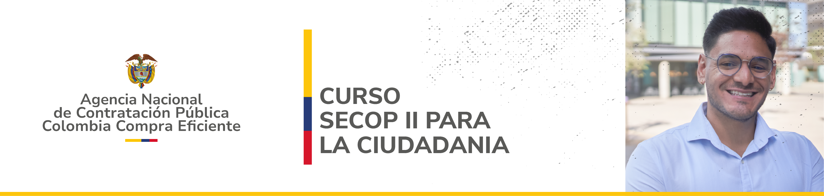 Descripción del curso: Conocer las nociones básicas, introducción a la plataforma, ¿Qué es el SECOP II?,¿Cómo se conforma? De igual manera, se explicarán algunos ejercicios básicos que le permitirán a cualquier ciudadano aprender a buscar dentro de los procesos de contratación publicados en SECOP II. El curso E-Learning de SECOP II para ciudadanos tiene como fin establecer unas pautas esenciales para los ciudadanos participes e interesados en la contratación estatal. Clic aquí para Matricularse